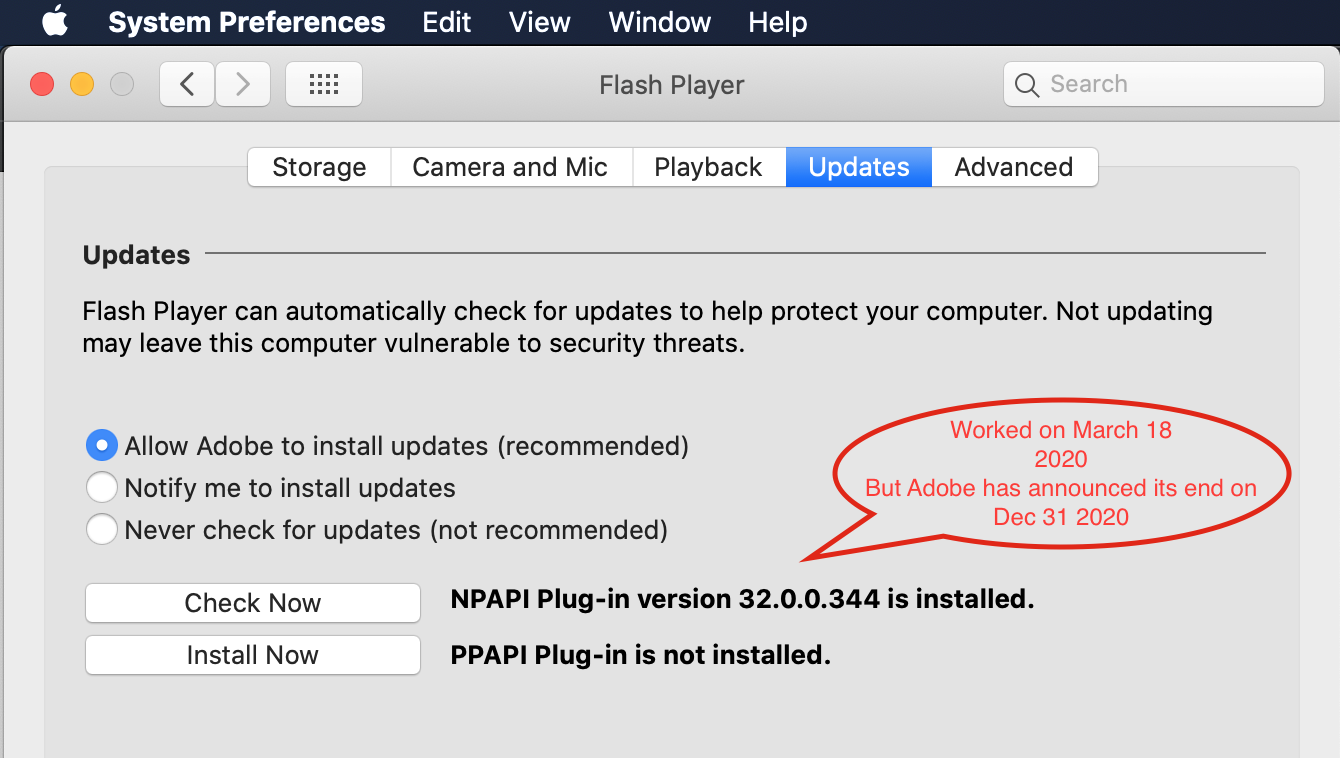 See the Read Me PageFlash Player on Catalina